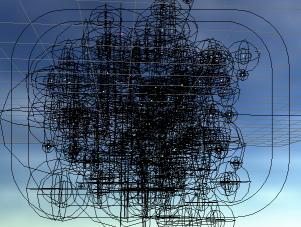 | Now, you need a decent background for your scene so you can create a simple one with the skytracer plugin under the image processing effects panel in layout. Open the panel and add the SkyTracer pixel filter. Adjust any of the settings to your liking and render the images and skytracer scene. I would suggest an image size of at least 1024 so that you have good resolution on your background maps. When it has saved your SkyTracer scene, Use LoadFromScene to include it in your current scene. Now you will have a nice background. I lower the Sky Cube Object and tilt my camera upwards at my particle system so that only the sky is visible without a horizon. | ![]() |